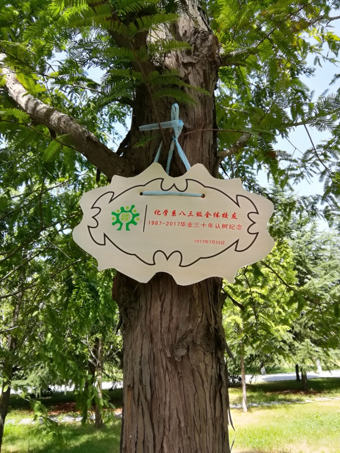 “四年师大人,一世化学情”,化学系八三级校友们在校友林认养了一棵树,真切表示在未来的工作中,不辜负学校的培养,不忘记学院的嘱托,为学校学院的进一步发展贡献自己的力量。