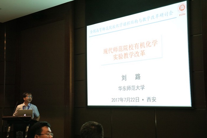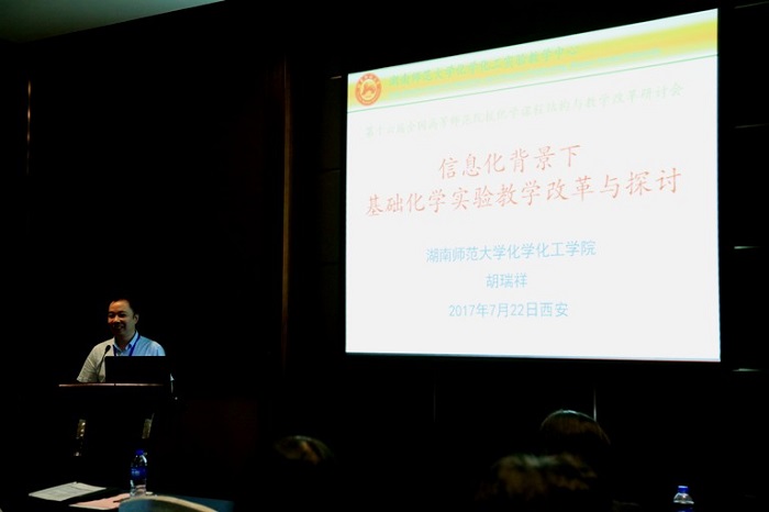 2017年全国高等师范院校化学课程结构与教学改革研讨会期间,共举行7场大会报告,18场邀请报告。7月22日下午在第二分会场,北京师范大学卢忠林教授、湖南师范大学胡瑞祥教授、河北师范大学曾艳丽教授、华中师范大学原弘教授、东北师范大学孙文东教授、西南大学李念兵教授、西北师范大学杨志旺教授、华东师范大学刘璐教授以及我校香蕉视频 张尊听教授等9位专家学者分别给参会的听众带来了精彩的报告。