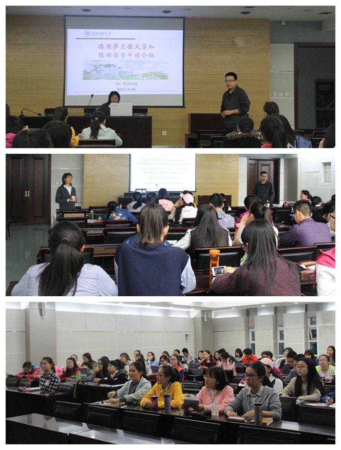 尹世伟教授主持了本次报告会,尹教授简单介绍了董奕教授的教学和科研情况。接着,董教授分两部分讲述了报告内容。首先,她简要介绍了萨兰德大学的地理位置、学校历史、师资力量、硬件设备、机构设置等情况,让同学们对萨兰德大学有了基本的了解。同时,董教授对同学们关心的留学问题也作了详细地说明。其次,董教授介绍了德国大学的课程设计情况,介绍了德国大学本科及硕士的课程概况,以及课程的学分设置,特别说明了德国课程成绩通常分为口试、考试、报告三部分。对比中国的教育,她认为德国的教育在重视基础知识的同时,注重研究性学习以及学生对知识的运用能力培养。报告之后,董教授就学生感兴趣的问题做了解释和说明,并与同学们互动交流。活动最后,尹教授表达了与德国萨兰德大学进一步交流活动的殷切希望。