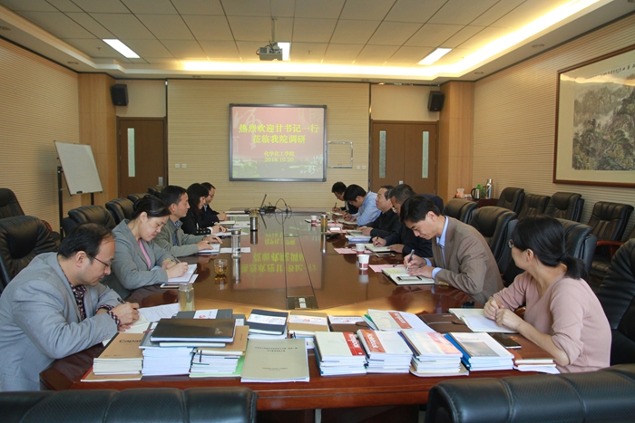 10月20日上午,在长安校区致知楼一段三层会议室,学校党委书记甘晖、组织部部长王永安、宣传部部长鲁镇、学校办公室副主任辛峰一行来香蕉视频