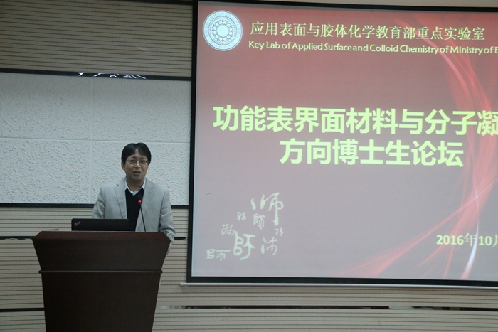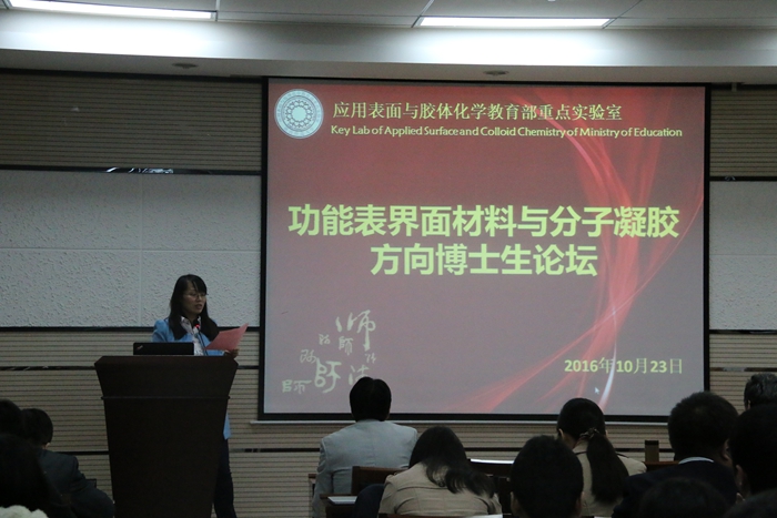 论坛由刘静副教授主持,应用表面与胶体化学教育部重点实验室副主任董文生教授致开幕词。随后,六位博士生对他们博士期间的科研工作进行了汇报,并就自己的研究工作与老师和同学们展开交流与讨论。报告过程体现了博士生良好的学术素养和严谨的学术精神。