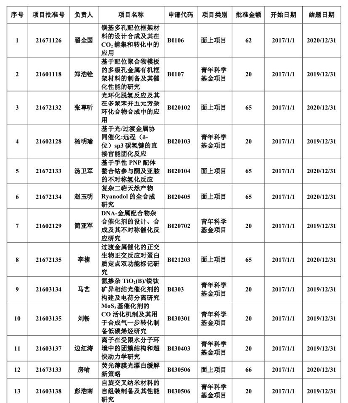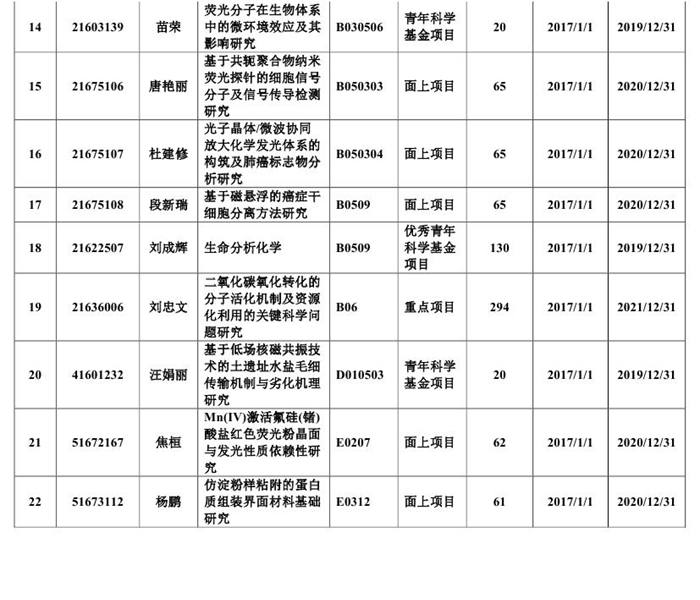 全校共有103项国家自然科学基金项目获得立项,直接经费4323万元。香蕉视频 22个项目获得资助,资助直接经费1310万元。其中,刘忠文教授申报的重点项目“二氧化碳氧化转化的分子活化机制及资源化利用的关键科学问题研究”获得立项(全校唯一),资助直接经费294万元,刘成辉教授申报的优秀青年科学基金项目“生命分析化学”获得立项(全校唯一),资助直接经费130万元,此外,香蕉视频 还获得面上项目11项,青年项目9项。