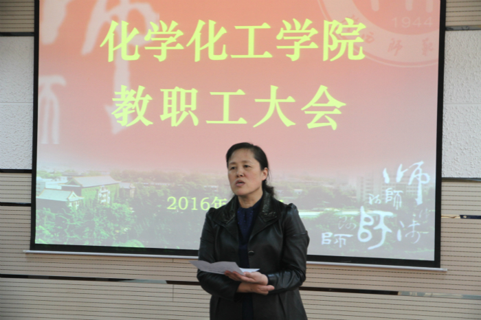 在致知楼六层报告厅召开全院教职工大会,传达学校2016年工作安排部署会议精神,部署2016年学院工作。学院党委书记高玲香,副院长焦桓、李保新、王晓,党委副书记王启明以及学院全体教职工参加了会议。会议由王晓副院长主持。