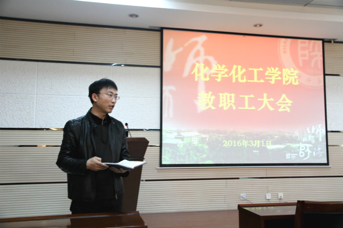 毕业生的考研和就业情况,倡导全院教师积极为毕业生考研复试和求职应聘提供指导,牵线搭桥。王书记表示,在新学期学院将邀请企业、培训机构的专业人士给学生提供实战性的就业指导,同时也希望全院教师积极引荐化学化工相关的企事业单位来院招聘,拓展毕业生就业市场,为学生提供更多的支持与帮扶。