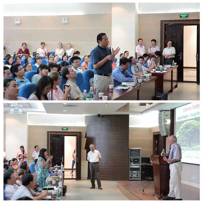 2015年8月4日上午,德国Mainz大学的Ringsdorf教授和清华大学张希院士受邀在致知楼2712报告厅为我校师生分别作了题为“Art is I, Science is We”和“可控超分子聚合”的精彩报告。报告会由房喻教授主持,校长助理杨祖培教授,香蕉视频