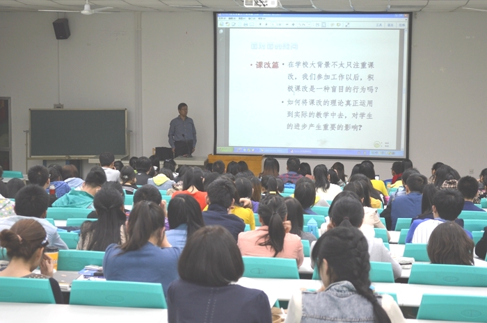 为切实做好2012级免费师范生高年级阶段的教育工作,进一步加强免费师范生的专业引导和志向引导,2014年10月26日晚7点,杨承印教授在文津楼101学术报告厅为香蕉视频