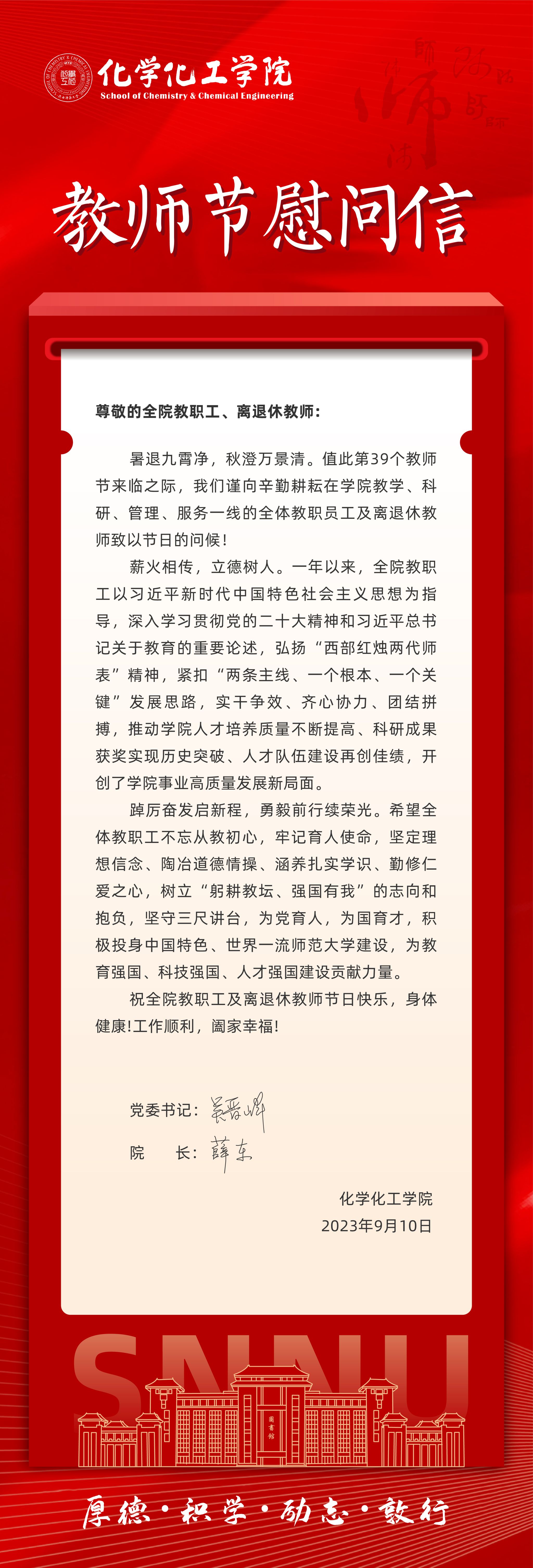 祝全院教职工教师节快乐!