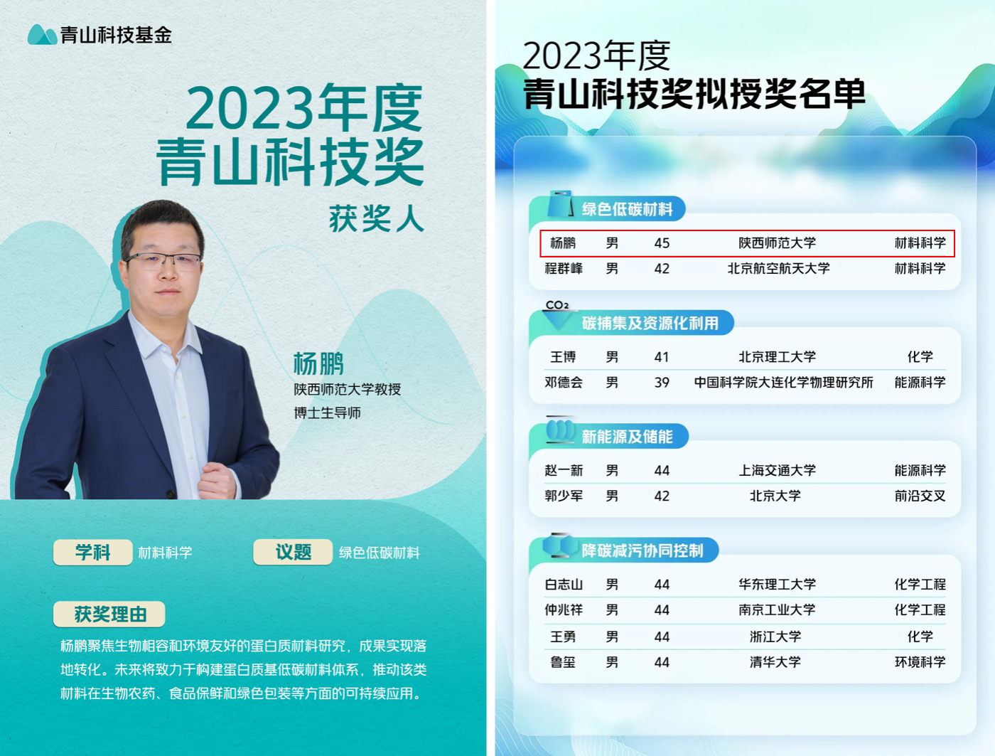 杨鹏教授入选,是陕西省获得该奖项的第一人。(//mp.weixin.qq.com/s/XhCwCpBMU46bRixRGB3hgw)。
