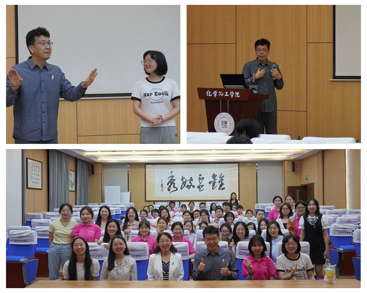 2024年4月21日,化卓2201班在武汉研学期间邀请华中师范大学物理化学研究所饶立教授参加教授接待日活动。饶立教授以中学化学知识点为引,进行了以“《结构化学》课程教学研究与实践”为题的主题报告,讲述结构化学原理在中学教学中的意义,强调作为师范生要在学好大学知识,中学知识的本质是要在大学课程中学习的,并以此为基础,不断培养自己的综合素质,为自身未来的发展打下坚实的基础。饶立教授激励同学们要提前为自己的人生做好规划,并为此不断付出努力,即使自己刚开始可能不能达到自己的期望值,但只要俯身于教育的稻田中不懈耕耘,终究能获得自己想要的结果,因为“社会从来不缺发掘的力量”。只要自身的能力足够扎实,最终都能发出耀眼的光芒。