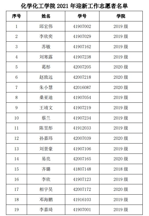 (附图:2021年迎新志愿者名单公示)
