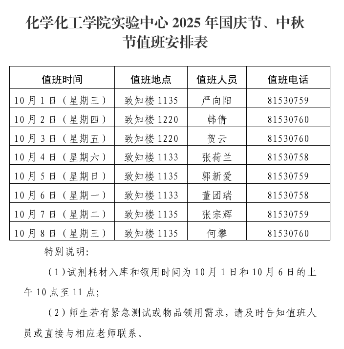 值班要求及注意事项: