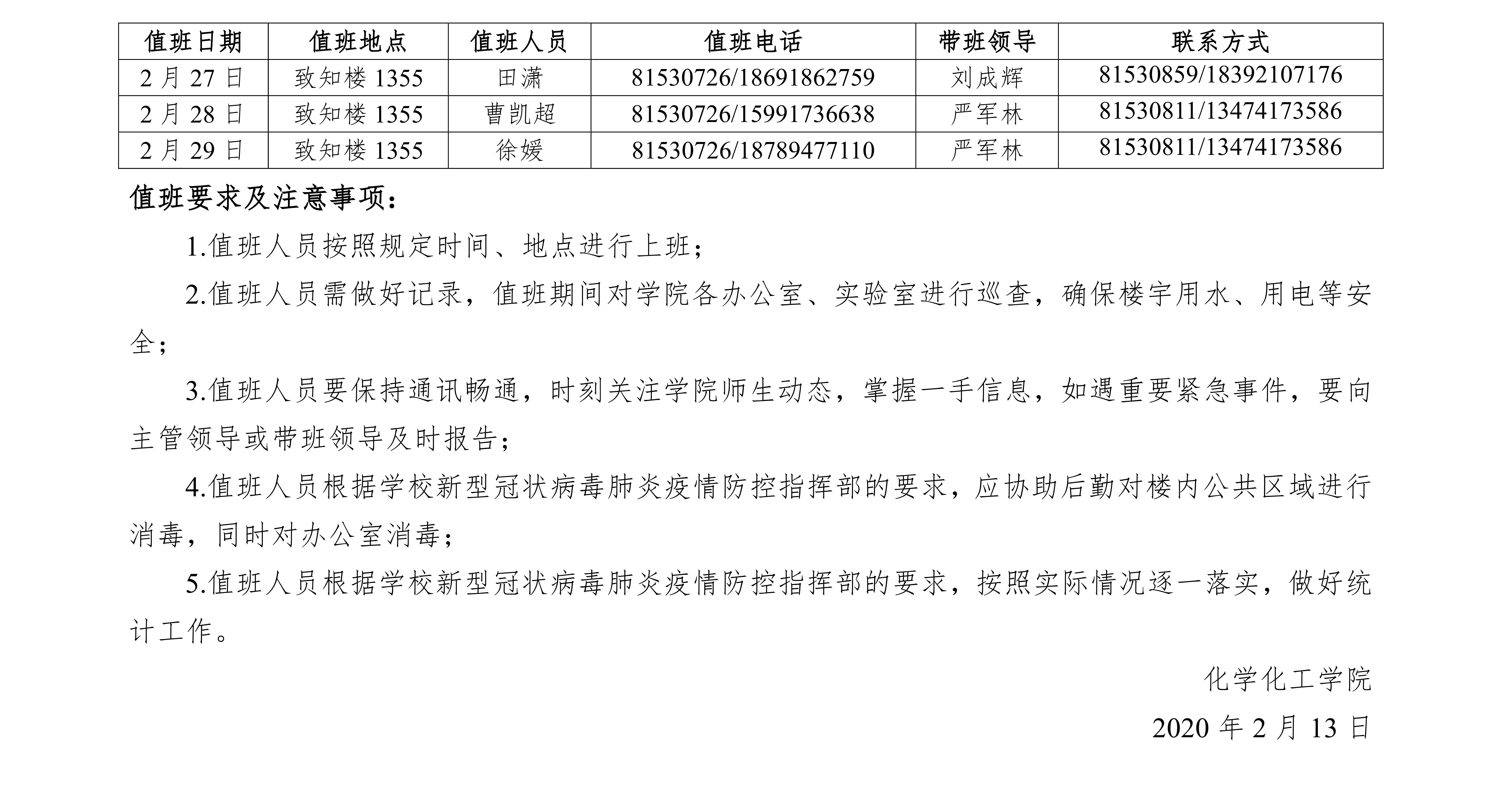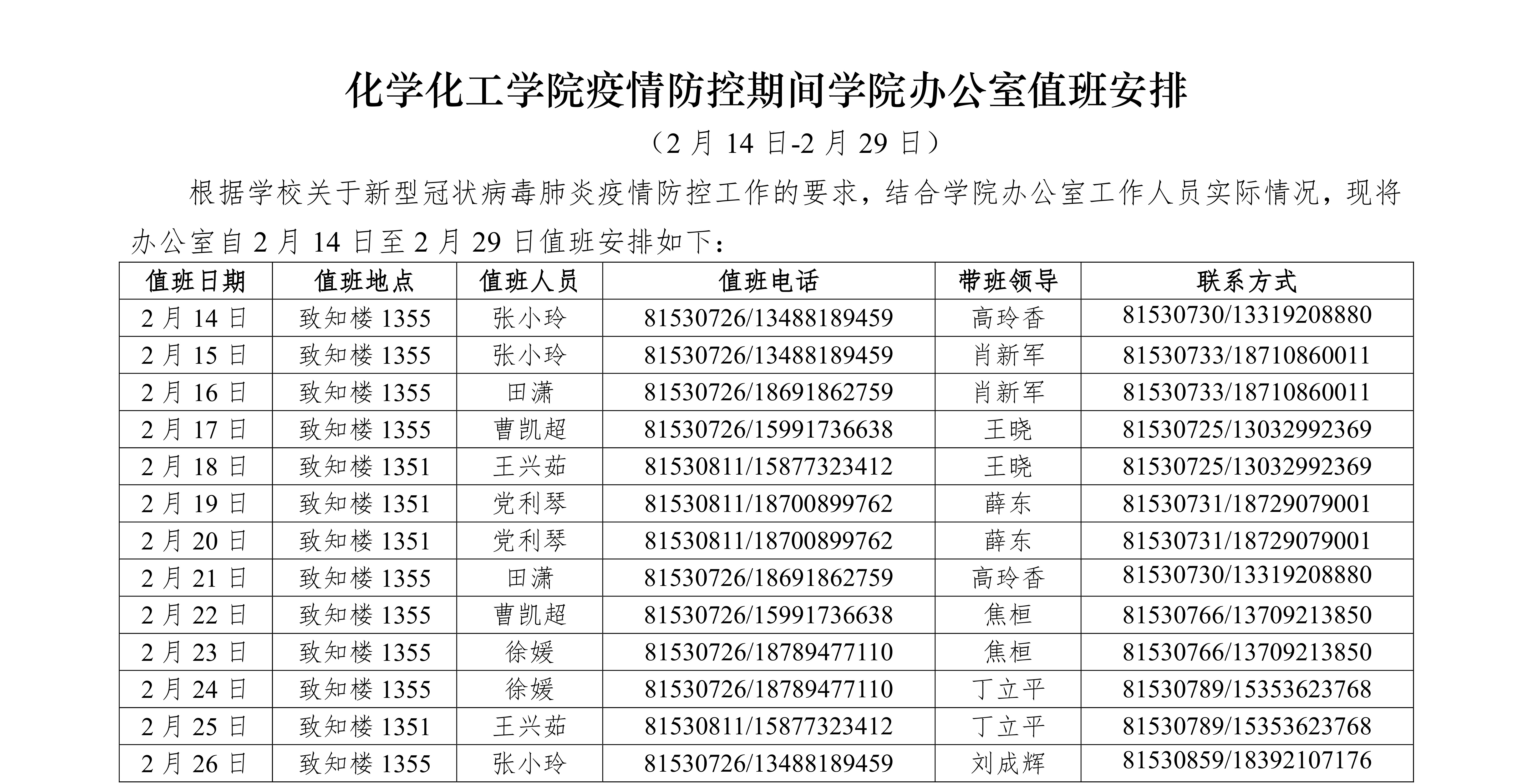 香蕉视频 疫情防控期间学院办公室值班安排 (2月14日-2月29日)