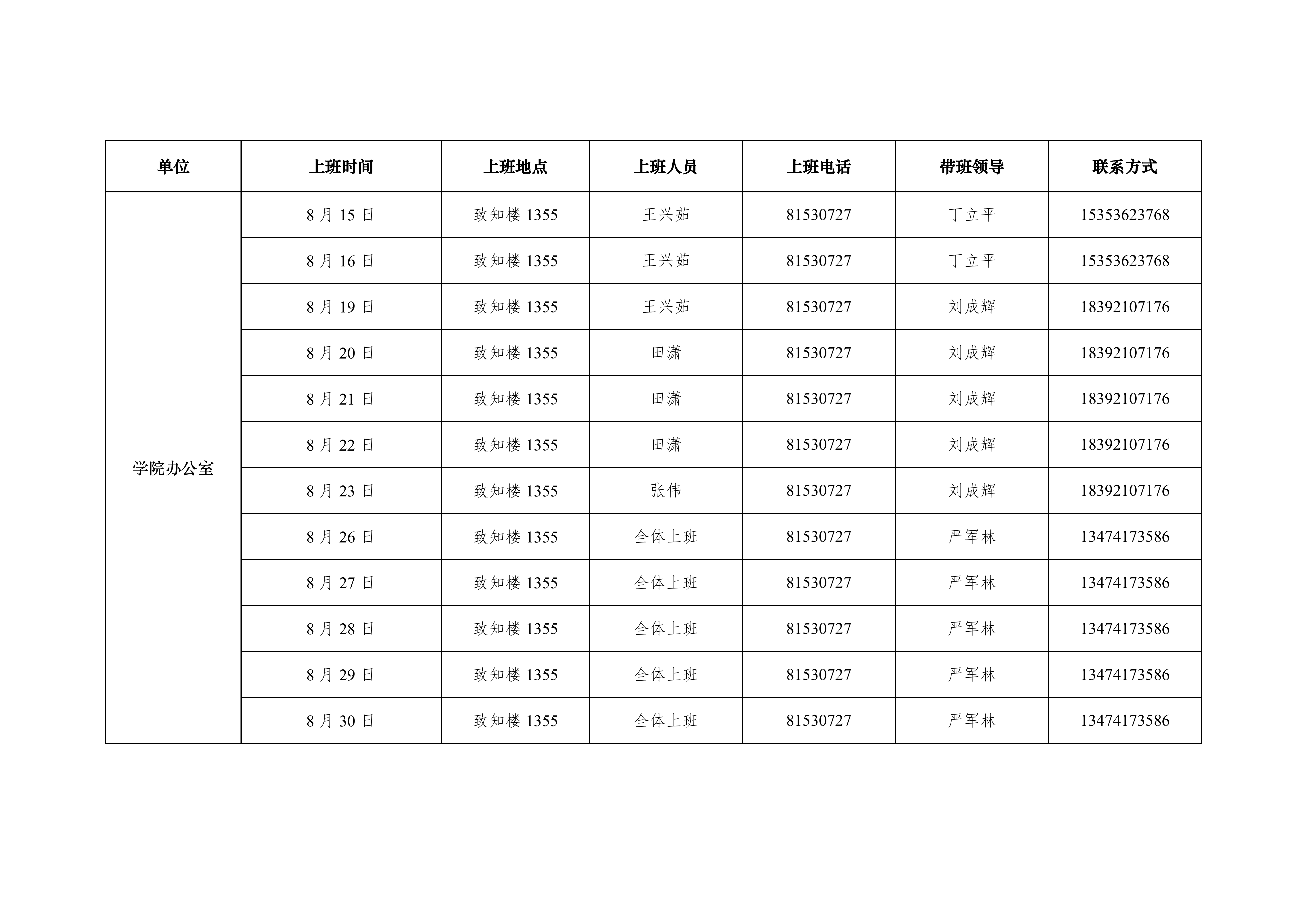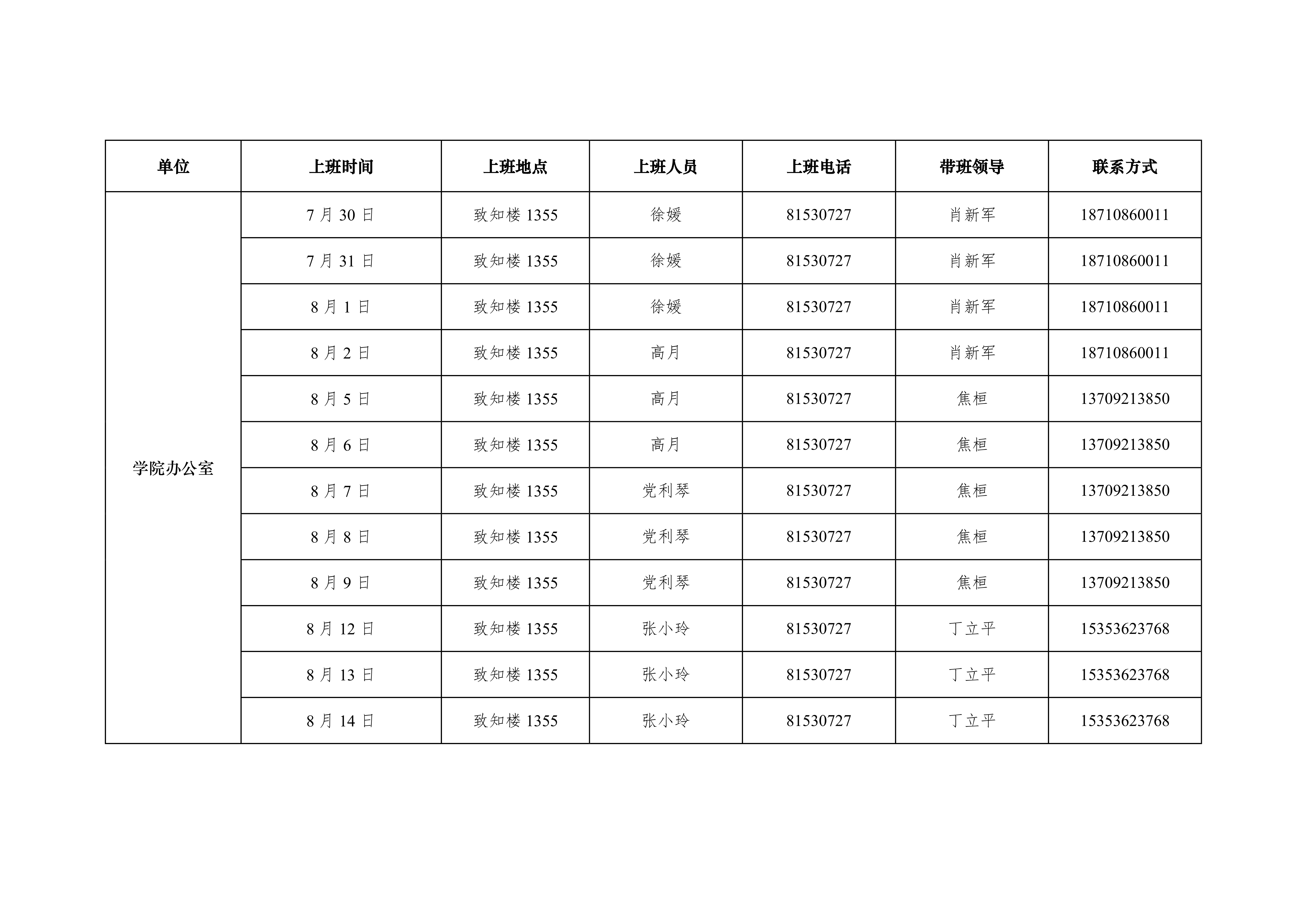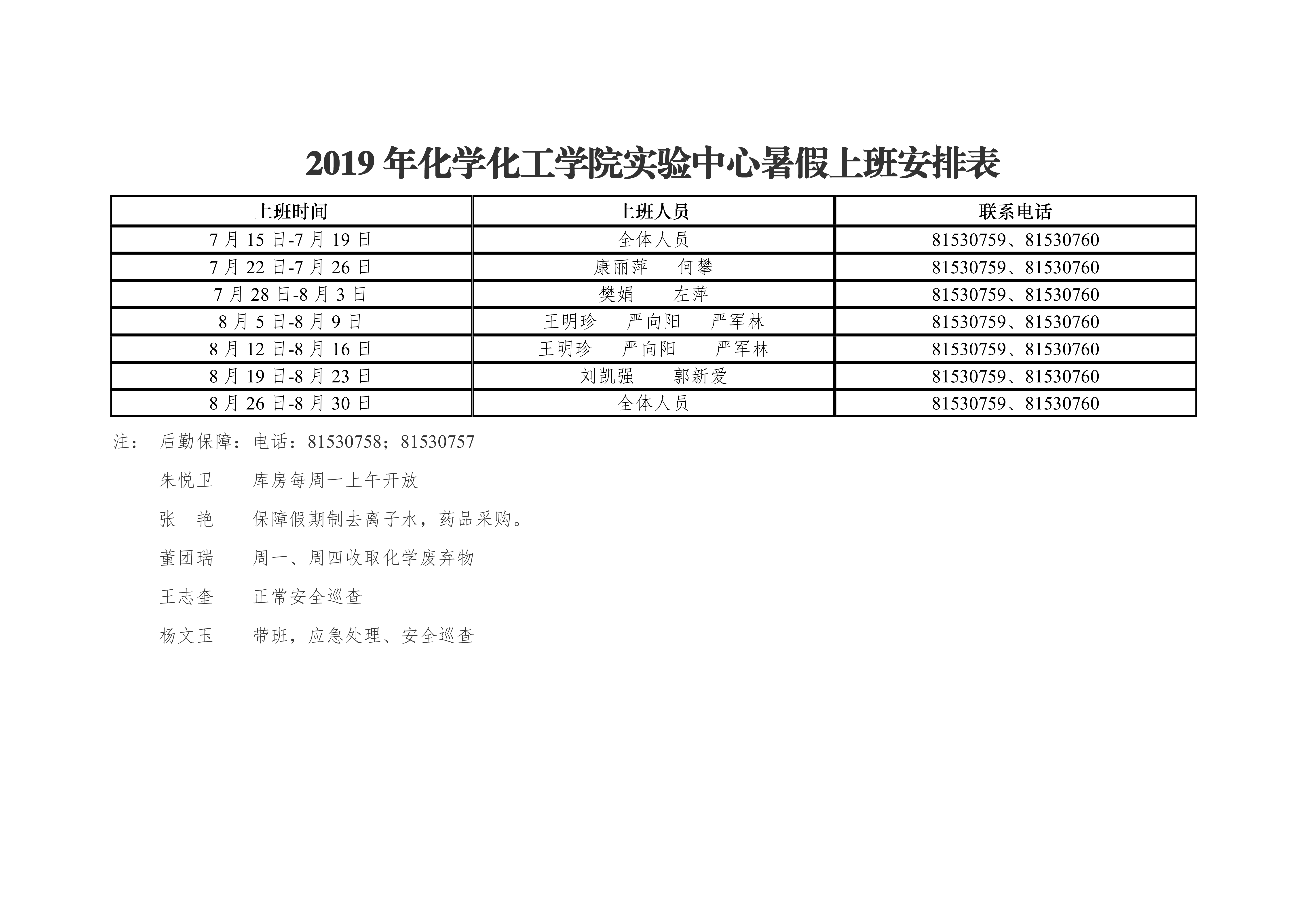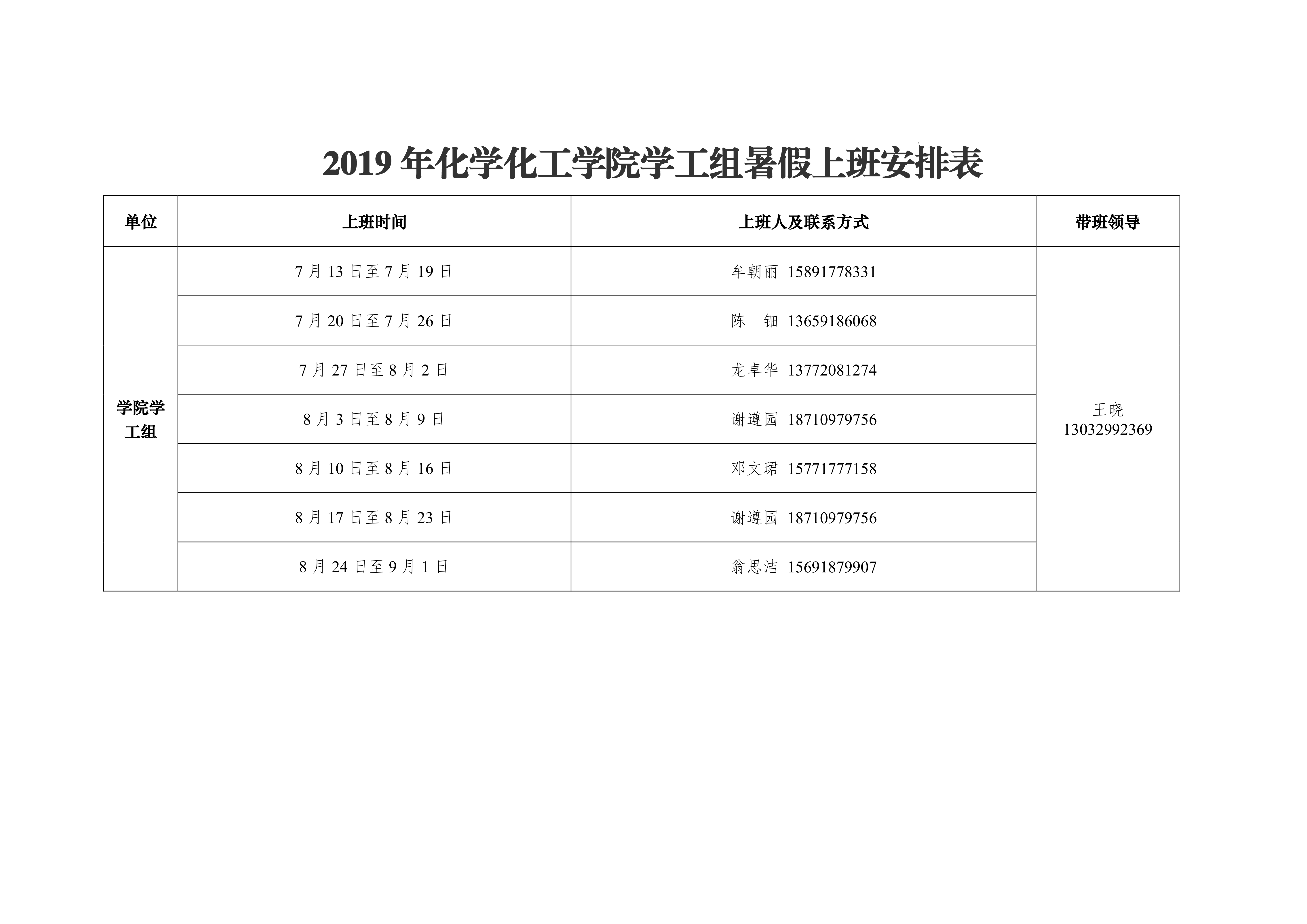 2019年香蕉视频 办公室暑假上班安排表