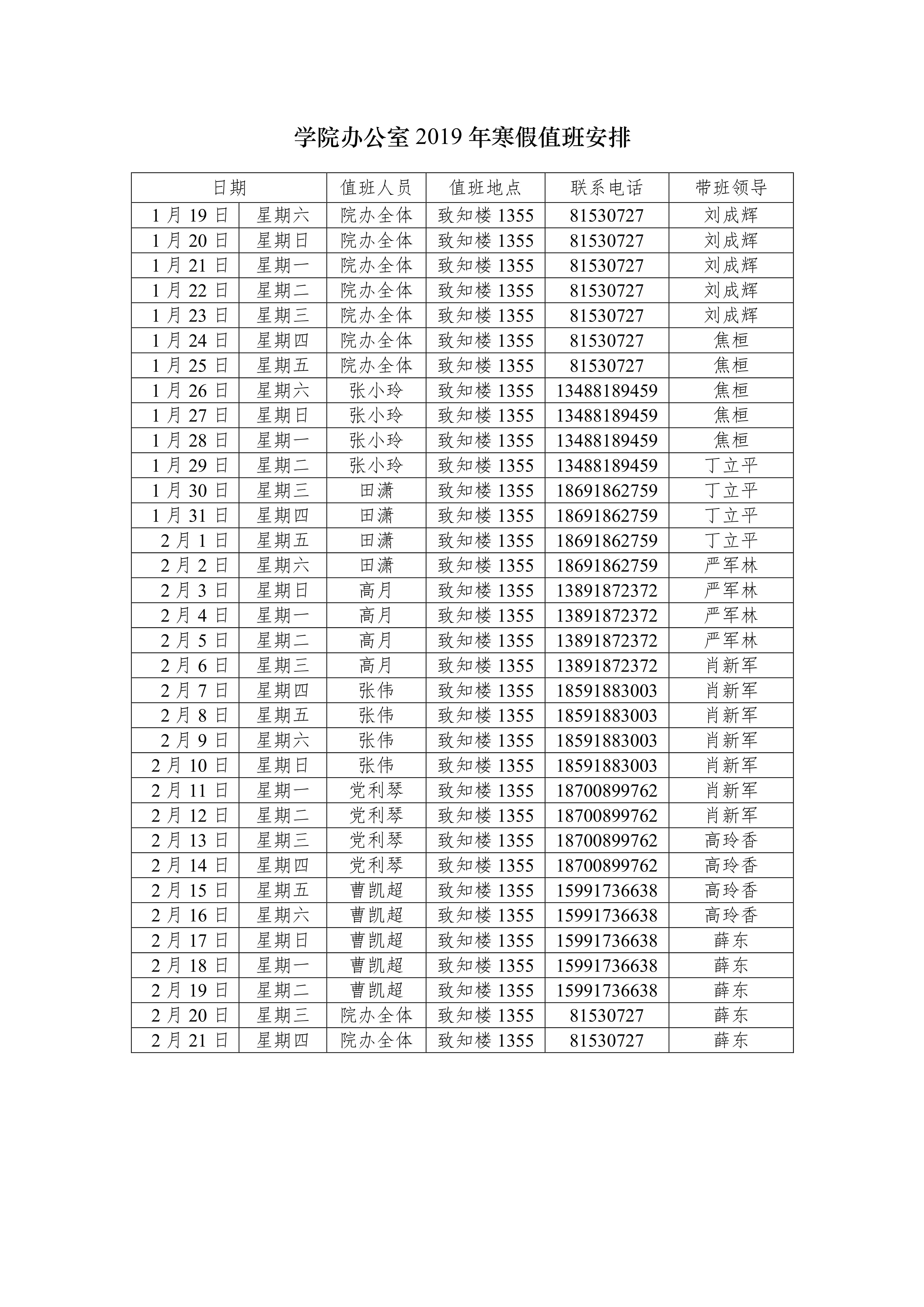 香蕉视频 2019年寒假值班安排