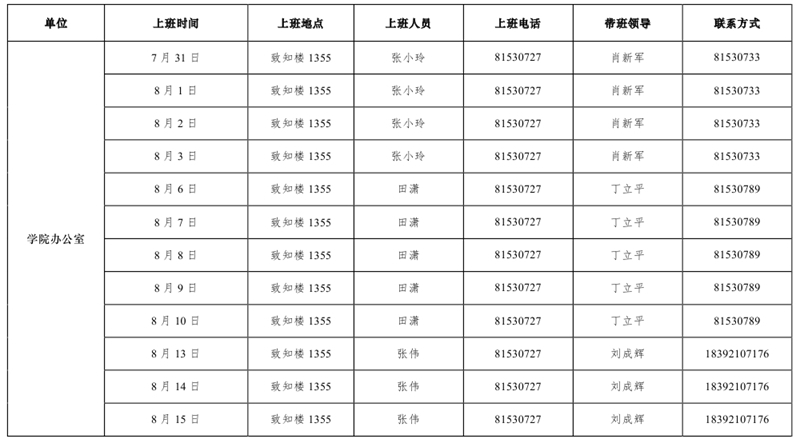 2018年香蕉视频 暑假上班安排表