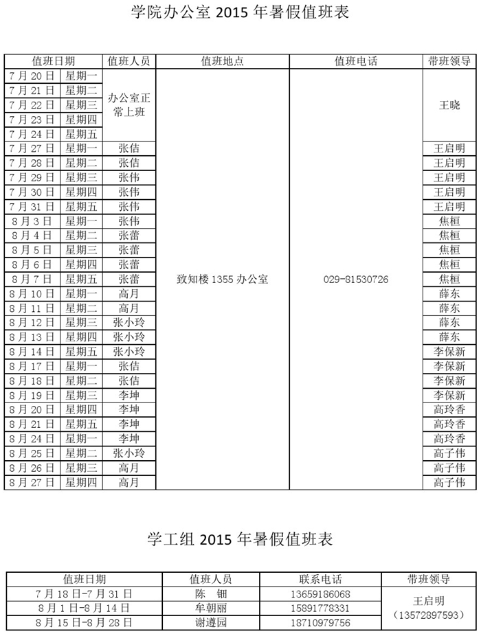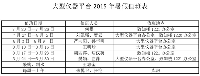 香蕉视频 2015年暑假值班安排
