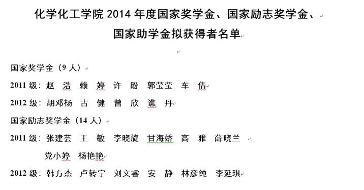 根据国家奖学金、国家励志奖学金、国家助学金的评选办法,结合学生处《关于开展国家奖学金、国家励志奖学金和国家助学金评选工作的通知》精神,经学生本人申请,班级评议,学院评审领导小组审核,现将香蕉视频 2014年国家奖学金、国家励志奖学金、国家助学金拟获得者名单公示如下。公示期三天,具体时间为2014年10月1日至10月3日。公示期间,若对获奖、获助人员存在异议,请于2014年10月3日下午五点半前通过面谈、电话、短信或邮件方式及时向王启明副书记反映。