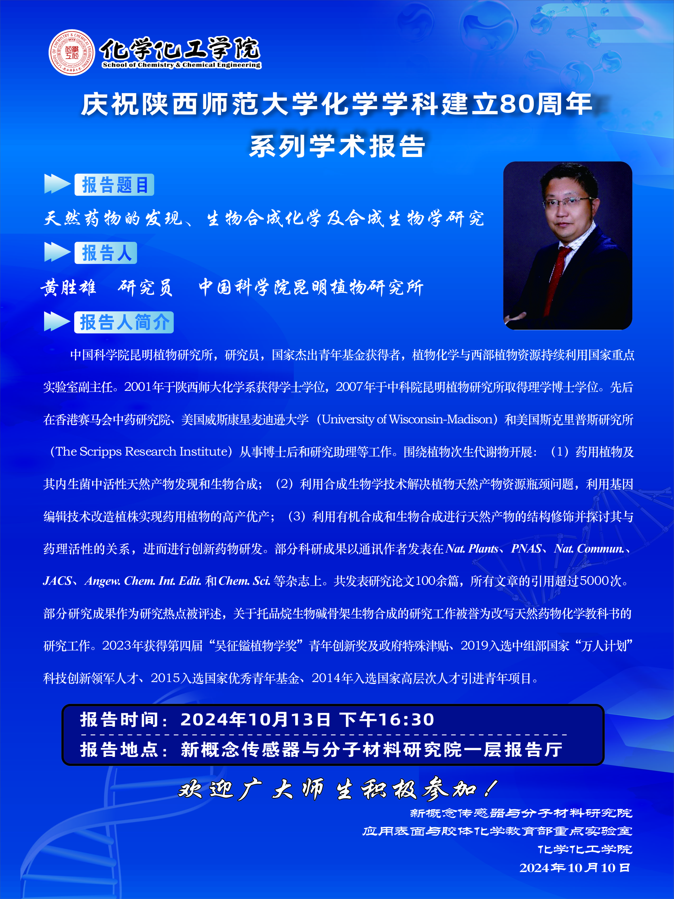 天然药物的发现、生物合成化学及合成生物学研究