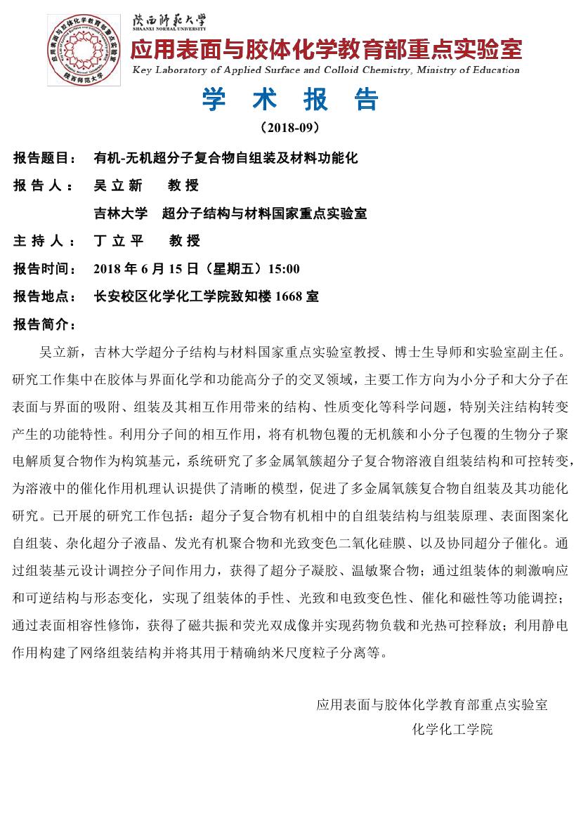 有机-无机超分子复合物自组装及材料功能化