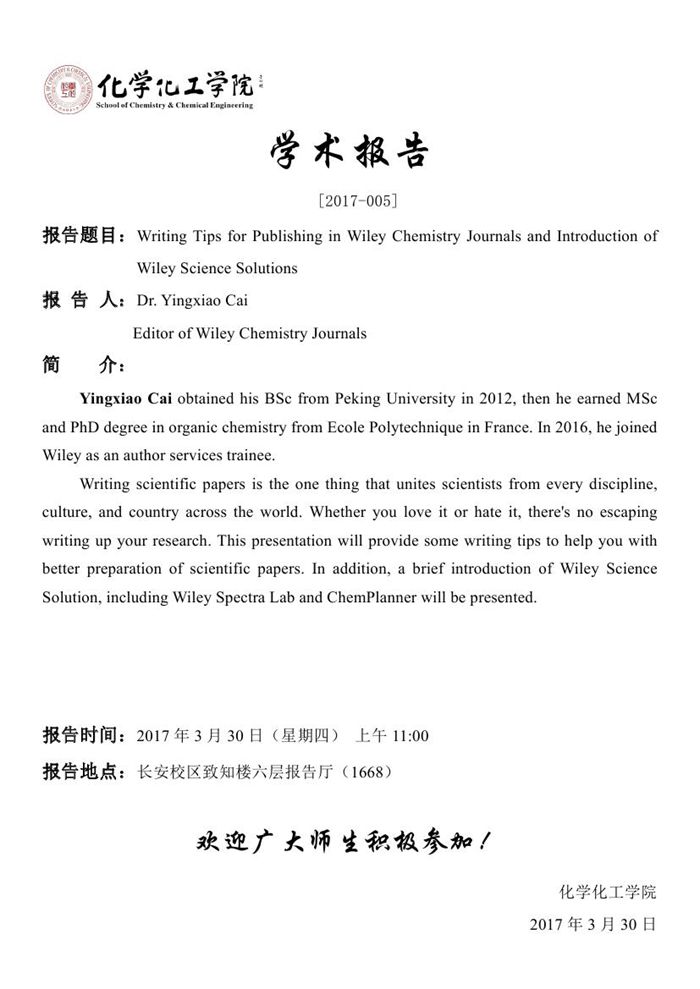 Yingxiao Cai学术报告预告[2017-005]