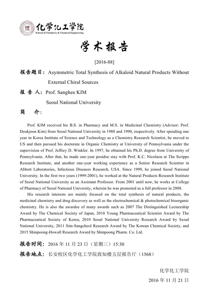 Sanghee KIM教授学术报告预告[2016-88]