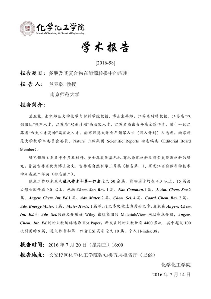 学术报告预告[2016-58]