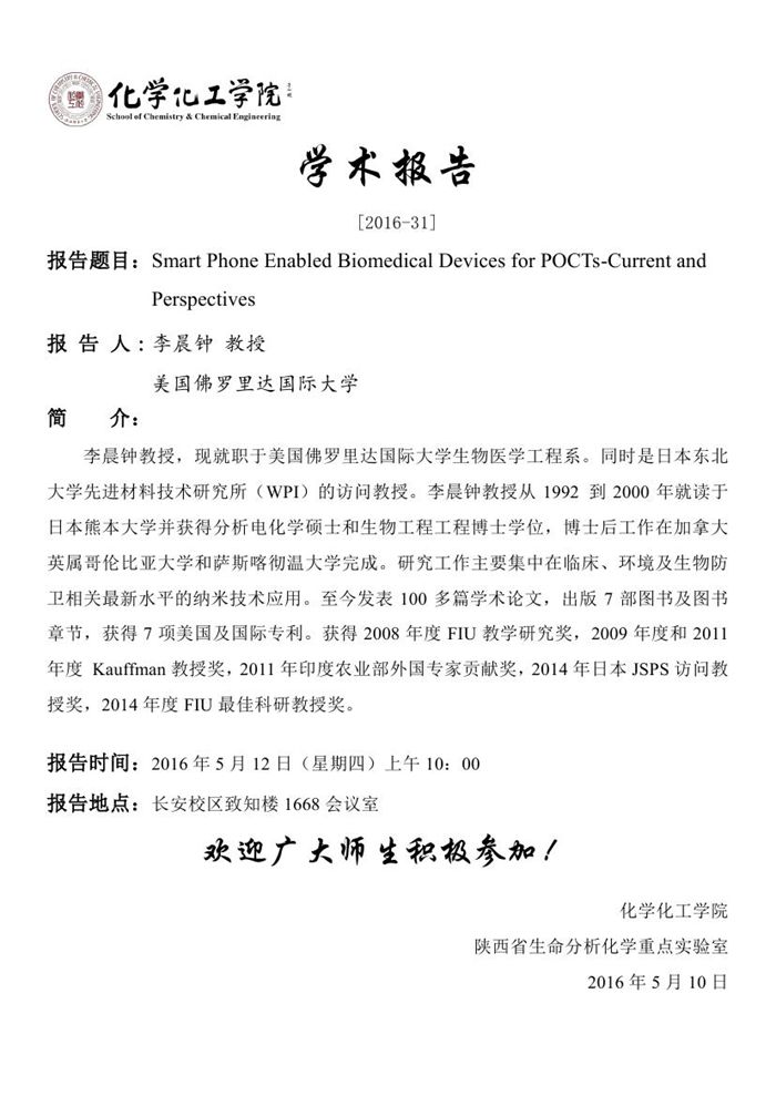 学术报告预告[2016-31]