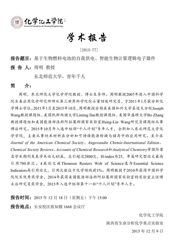 学术报告预告[2015-77]