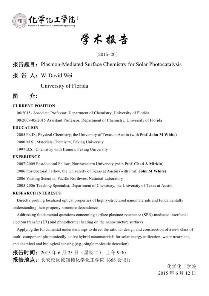 学术报告预告[2015-26]