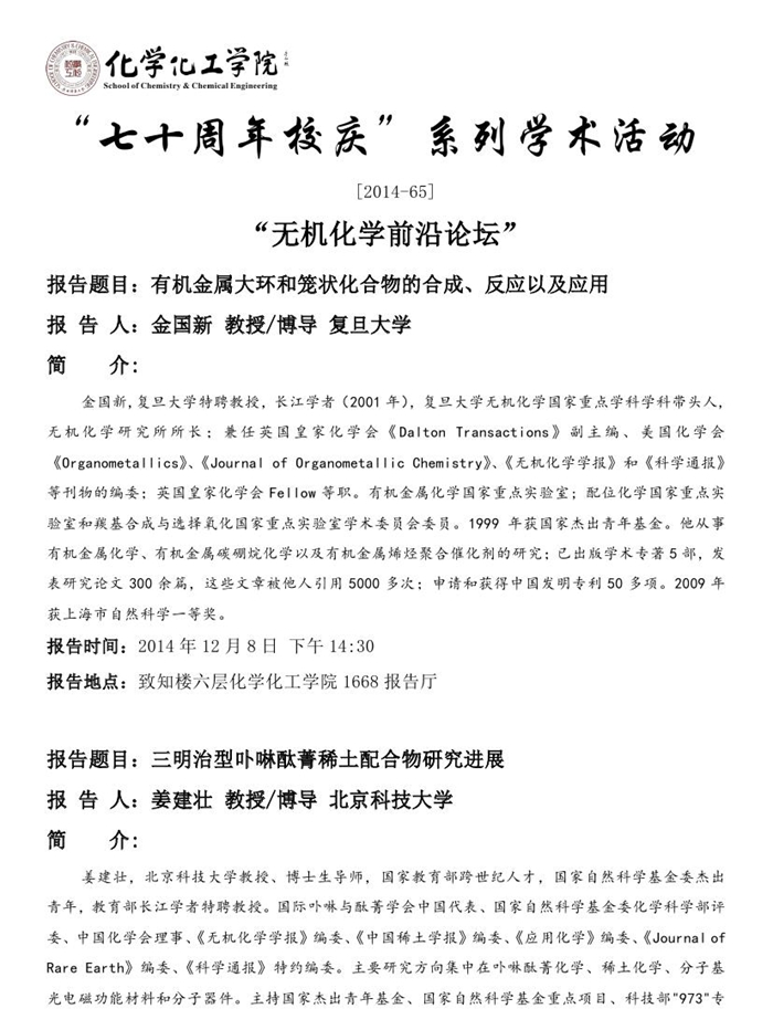 “七十周年校庆系列活动” [2014-65]