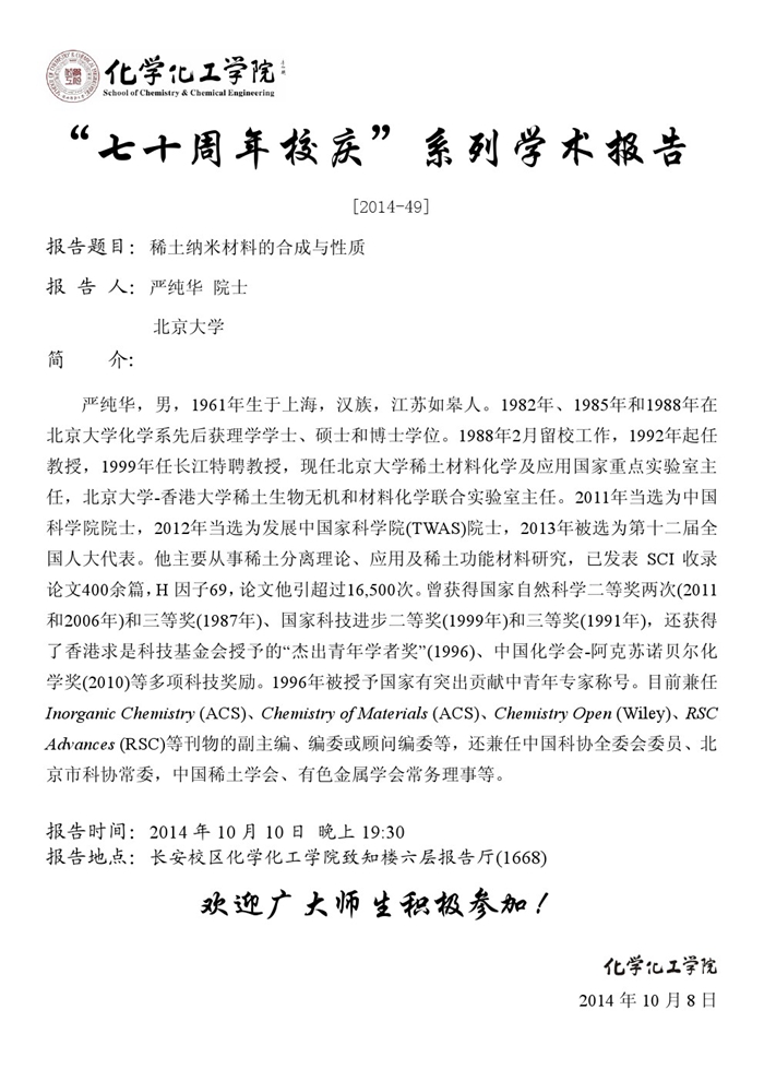 “七十周年校庆系列讲座” [2014-49]
