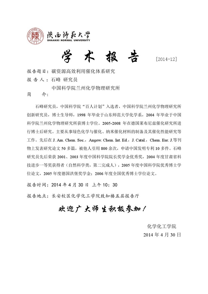 学术报告预告[2014-12]