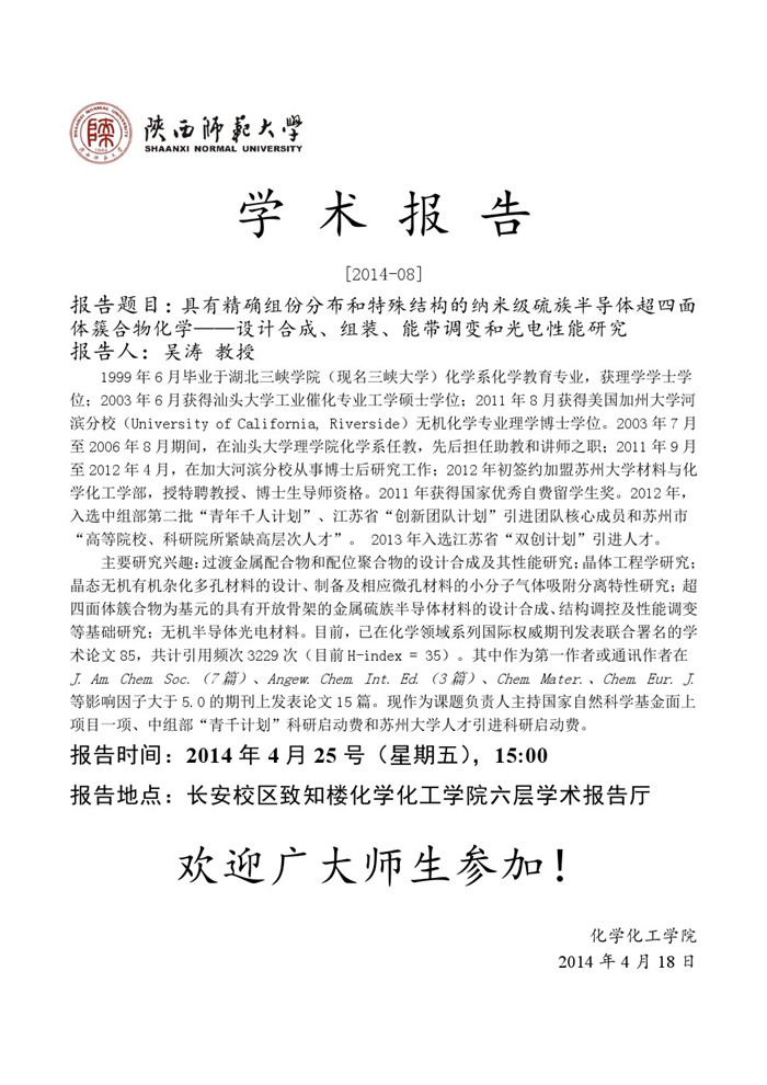 学术报告预告[2014-08]