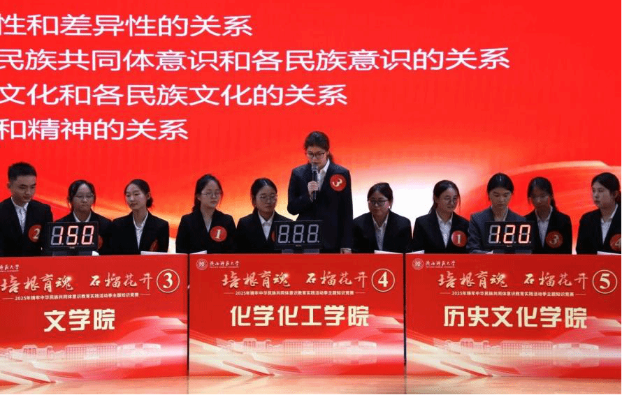 参赛。竞赛以“培根育魂·石榴花开”为主题,紧扣铸牢中华民族共同体意识的核心要义,设置必答、抢答、主题陈述等多个环节,题目覆盖民族理论政策、民族历史文化、时事热点等多方面内容,全面考验参赛选手的知识积累与应变能力。比赛过程中,香蕉视频