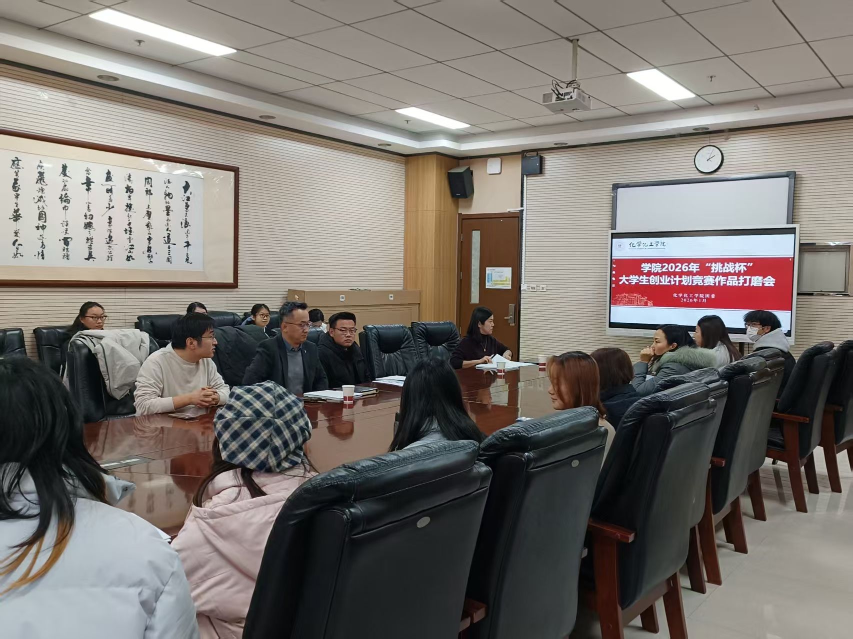 为激发学生创新创业热情,提升参赛项目质量与竞争力,营造积极备赛氛围,学院于1月4日在致知楼1362、1347、1447会议室举办了2026年“挑战杯”大学生创业计划竞赛作品打磨会。