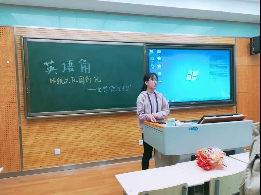 为帮助同学们提高英语口语水平,激发同学们学习英语的兴趣,同时加深同学们对我国传统文化在国际上影响力的了解。化创1702班全体同学于4月27日晚7点在教学5楼5103教室开展了以“传统文化国际化”为主题的英文演讲比赛。