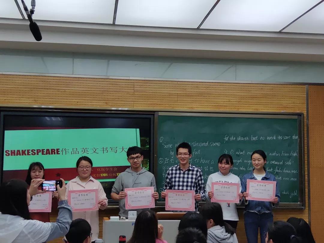 为了提高同学们英文书写的能力,化学创新实验班1701和应用化学1701在4月15日举办了以“Shakespeare作品英文书写大赛”为主题的英语角活动。
