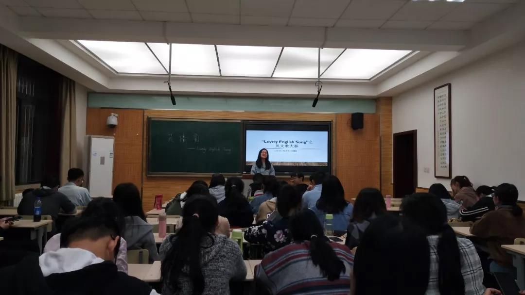 为了激发同学们在英语学习方面的兴趣,化卓1701和化卓1801全体同学于2019年4月12日在教学五楼5103举行了以“Love English Song”为主题的英语歌曲分享会。