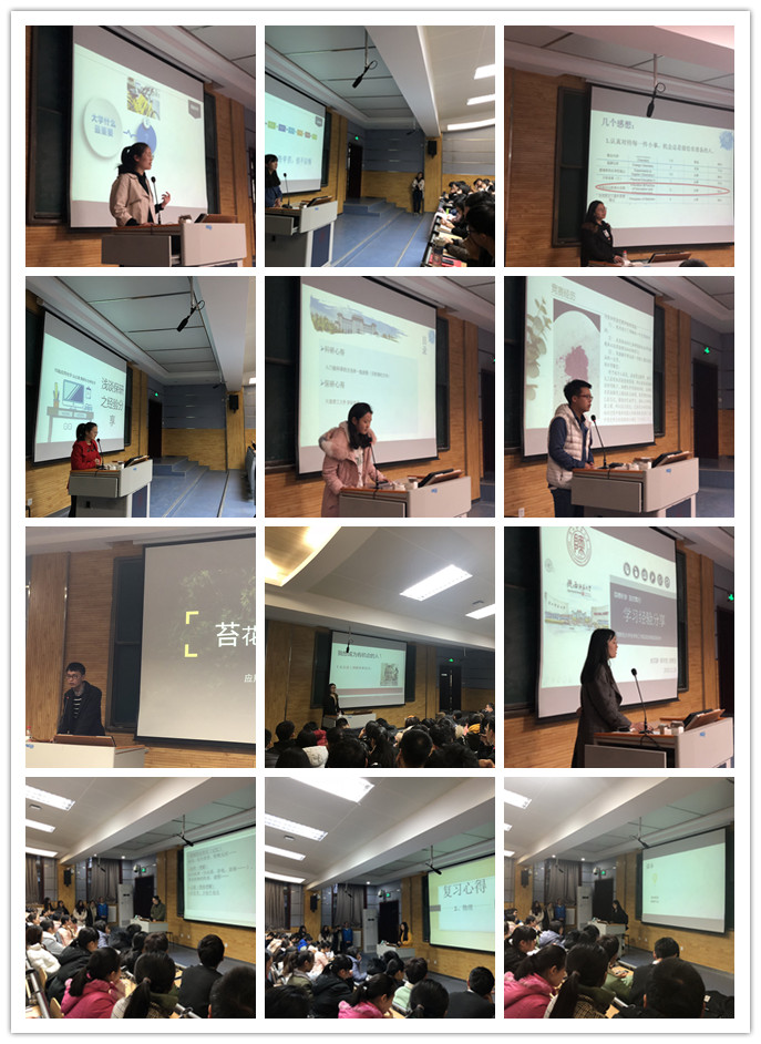 2015级达高欢等同学强调大学设定自我目标的重要性,只有目标清晰,前行的动力才会持久;2016级陈露等同学认为学习生活方式因人而异,找到适合自己的才是最好的;2017及李越等同学结合参加卓越游学项目的亲身经历,从项目申请流程、感想收获等方面展示了自己的成长进步;全国化学实验竞赛获奖者何昌礼同学讲述了自己备赛、参赛到获奖的经历,告诫大家要打牢专业基础,抓住每一次机会;成功入选学校研究生支教团的高进同学分享到知识的来源不只是书本这唯一途径,期望学弟学妹们多从实践中去了解专业和社会,增长见闻;专业分流进入化学的李丰哲同学回顾了艰苦的大二生活,并总结到既然选择了就要义无反顾地付出努力,最终也会取得好的回报……