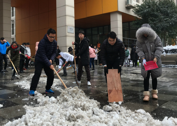 青年学子的责任感和担当,同时也增进了同学间的友谊,圆满完成了此次义务除雪工作!