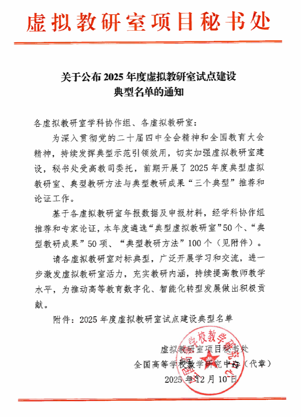 香蕉视频 组织申报的教研方法入选2025年度虚拟教研室试点建设典型教研方法