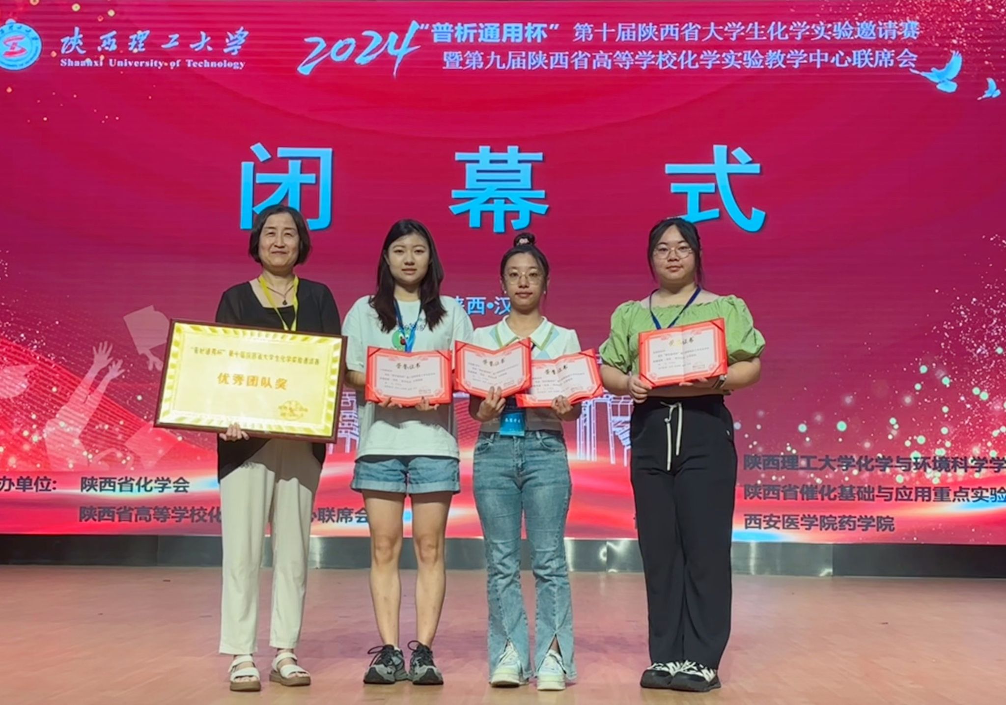 国家级实验教学示范中心办公室主任严军林、分析教研室刘伟老师带队四名本科生参加比赛。经过激烈角逐,2021级本科生杨鑫越、王雨萌、卓雨馨同学分别获一等奖,田雨欣同学获二等奖,香蕉视频