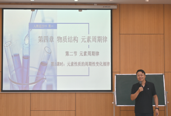 西工大附中一级教师王博老师为同学们讲授了一堂生动的《元素周期律》示范课,王老师以通俗易懂的语言,结合丰富的实例和图表,生动地介绍了元素周期律的基本概念和发展历程。他引导学生们从元素周期表的结构、周期性规律等方面深入理解元素周期律的奥秘,让抽象的化学知识变得具体而生动。通过实验演示和互动问答环节,王老师让学生们亲身体验元素周期律的规律性和实用性,激发了学生对化学学科的兴趣和探索欲望。学生们积极参与课堂互动,踊跃提问,与王老师展开了深入的讨论,整堂课氛围十分活跃,师生互动丰富。
