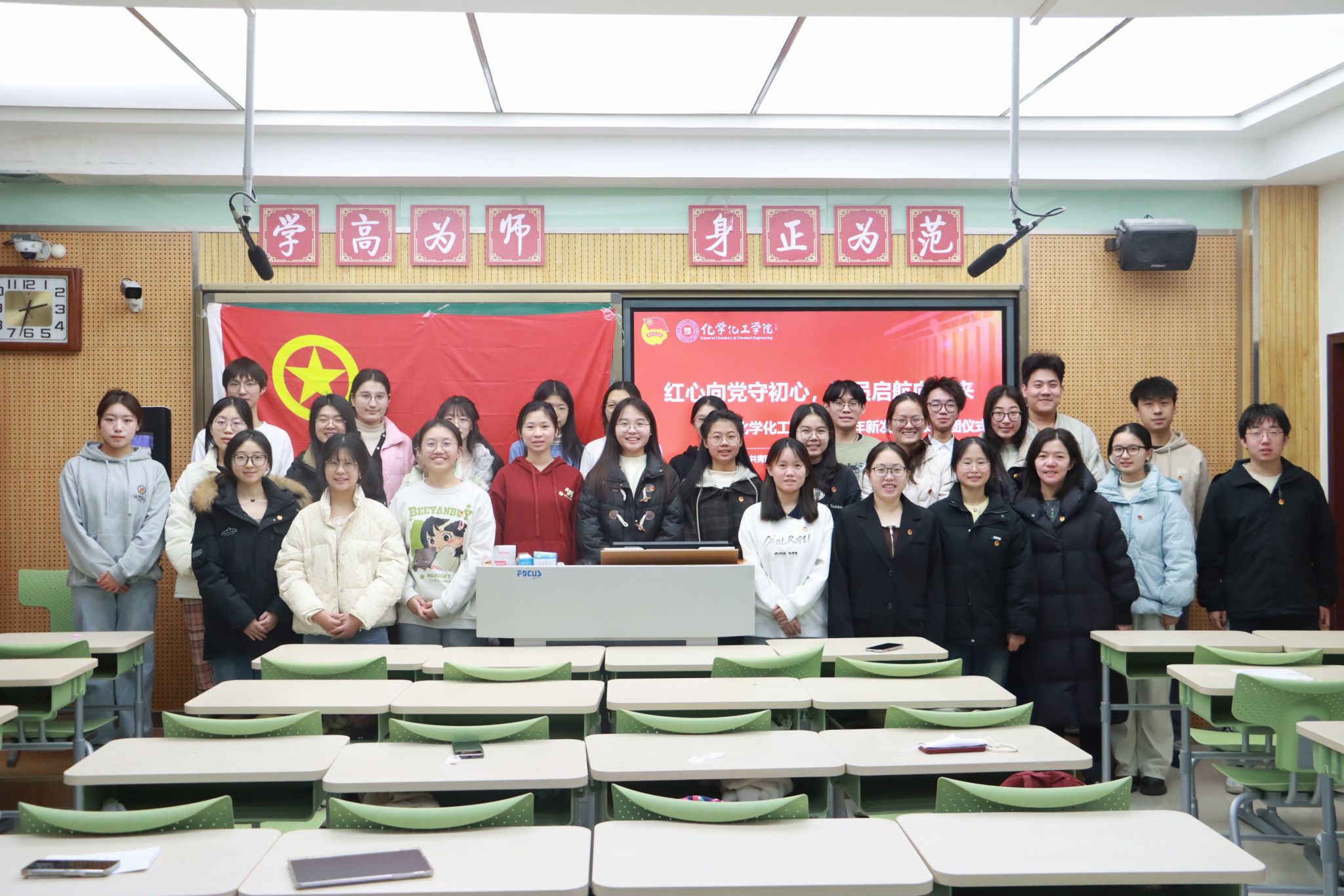 团支部书记、优秀团员代表为新发展团员佩戴团徽。2023级本科生刘浩帆领誓。入团誓词是一份铿锵有力、铭刻初心的政治誓言,希望广大团员今后能够将誓言镌刻在心里、落实到行动上。