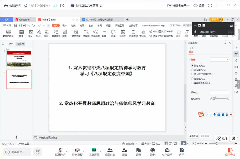 教工分析党支部召开线上组织生活会,会议聚焦《八项规定改变中国》学习和师德师风教育。全体党员教师观看《教育家质量万里行》中李校堃、王芬两位最美教师视频,学习典型事迹,并展开线上讨论,进一步提升思想认识和师德修养。会议对后续教研室教学工作及期中考试阅卷工作提出明确要求,强调党员教师要认真负责、严谨治学,确保教学质量,严格遵守阅卷纪律,保障阅卷工作公平公正。