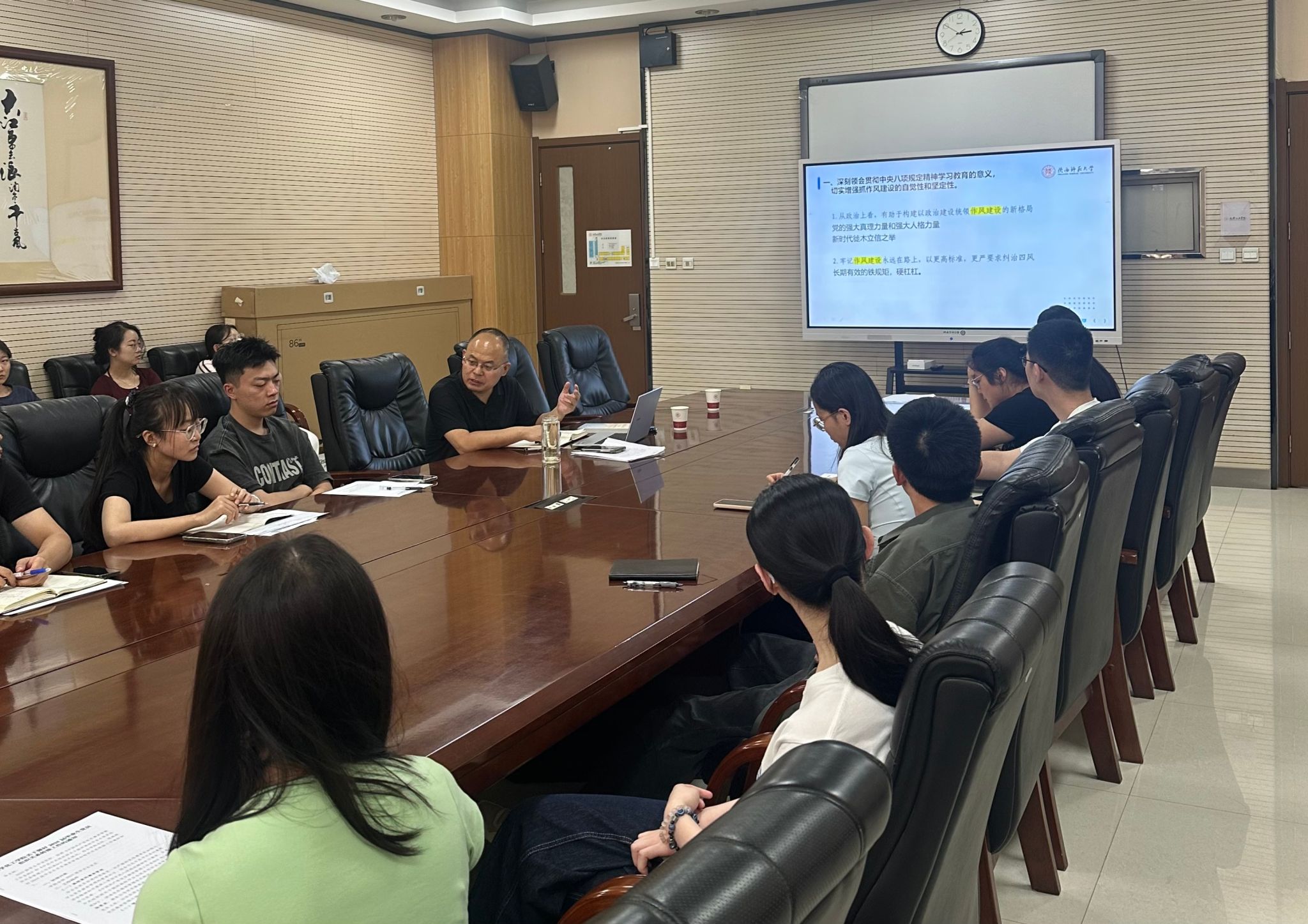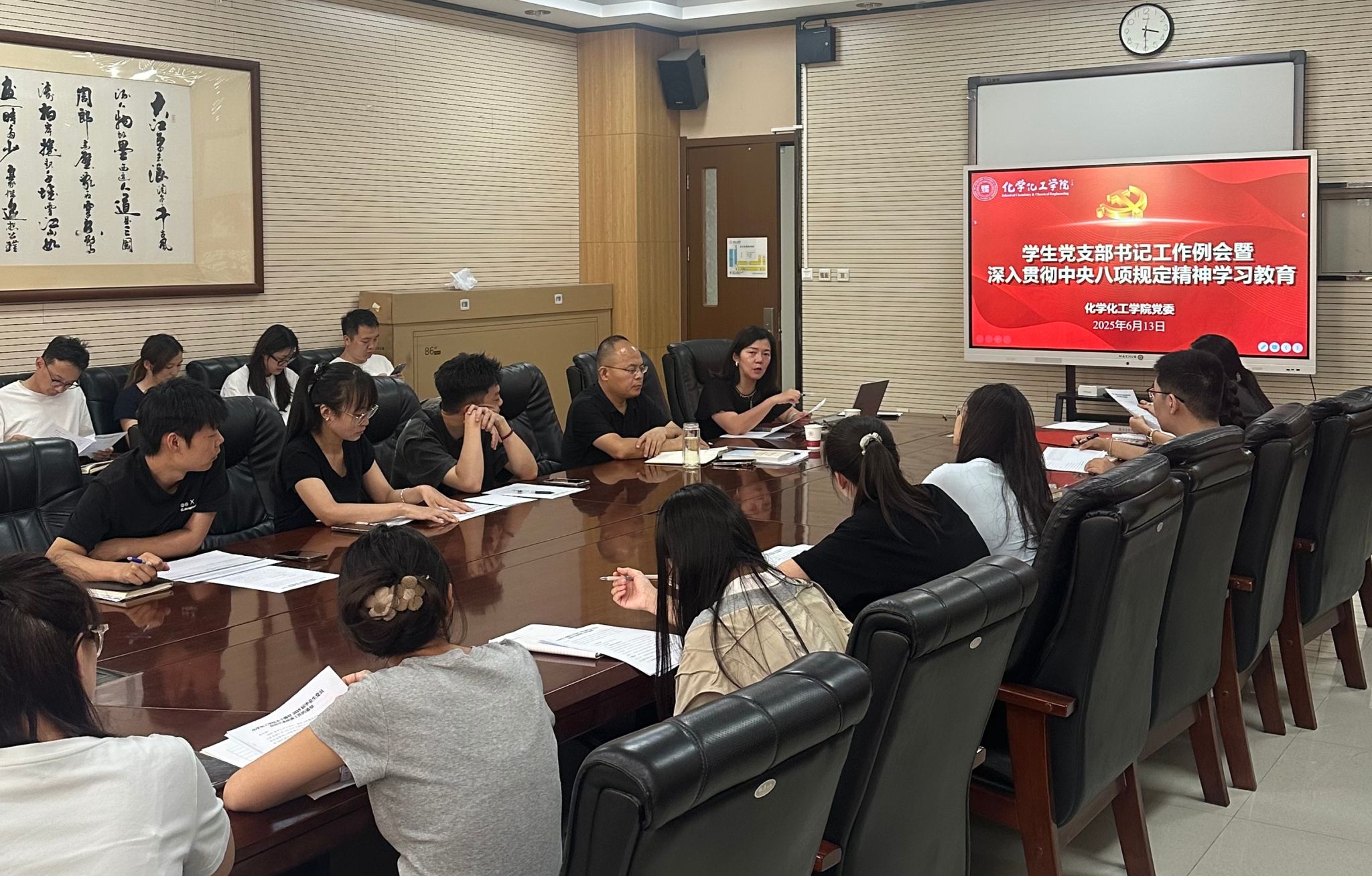 为持续推动深入贯彻中央八项规定精神学习教育走深走实,6月13日下午,学院党委在致知楼1362会议室召开深入贯彻中央八项规定精神学习教育专题党课暨学生党支部书记工作例会。