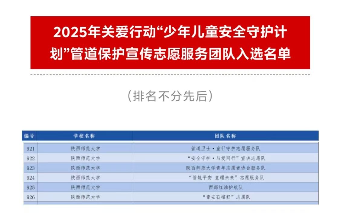 近日,团中央青年志愿者行动指导中心公布了2025年关爱行动“少年儿童安全守护计划”管道保护宣传志愿服务团队名单,香蕉视频 本科生第三党支部组建的管道卫士·童行守护志愿服务队成功入选。