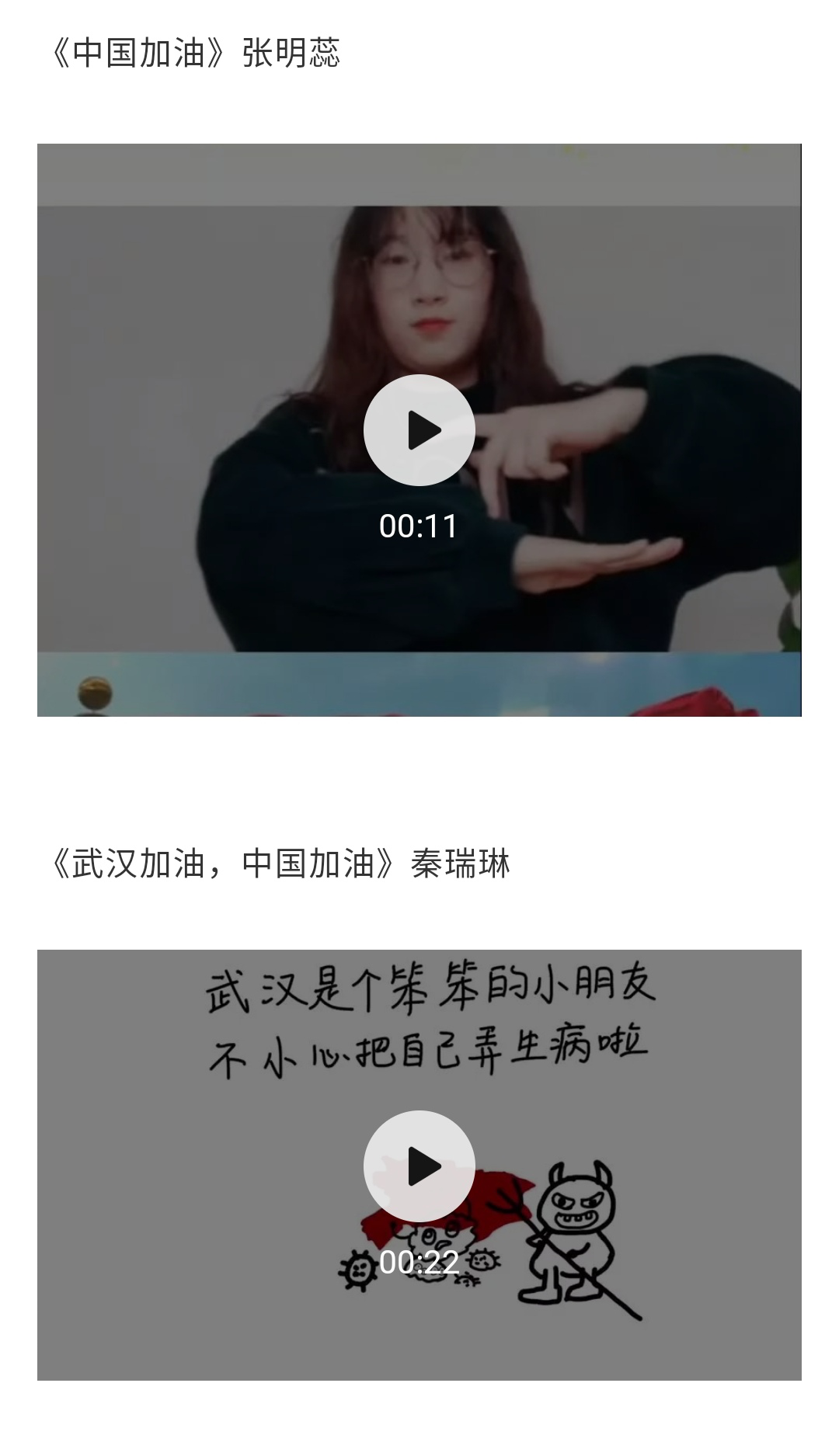新一代青年学生党员,希望用这些作品,凝聚起众志成城、全力以赴、共克时艰的强大正能量,以自己独特的形式鼓舞人心,凝聚斗志、讴歌英雄、传递正能量,为武汉加油、为祖国加油!
