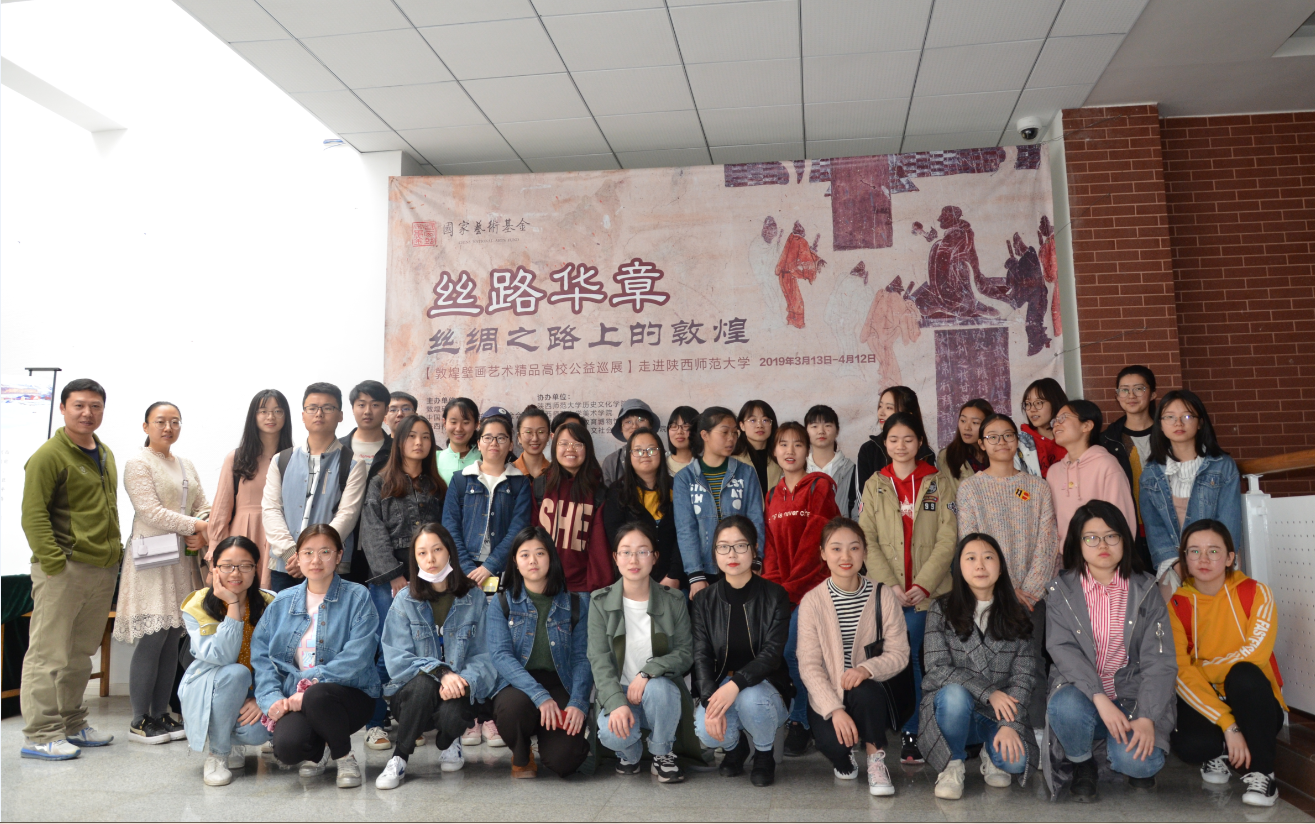 香蕉视频 教工行政党支部和本科生党支部全体党员于2019年3月27下午2:30参观了历史文化学院主办的“敦煌壁画艺术精品高校公益巡展”所展出的精美壁画。