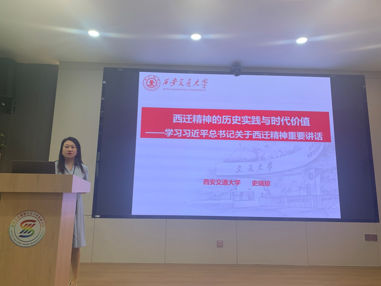 本次学习还邀请了西安交通大学党委宣传部副部长史瑞琼给与会老师分享了西迁精神的历史实践与时代价值。史老师用史实诠释习近平总书记指出的交大西迁体现“党中央的良若用心”,从工业布局、教育布局、推动西部发展的层面,通过一个个鲜活的事例、生动的故事,深刻诠释西迁人“听党指挥跟党走”“打起背包就出发”的爱党护党意识和炽热的家国情怀。